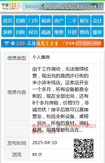 由于工作调动,无法继续经营,现出兑的是西步行街的米小柒米线店。这家店开业一个多月,所有设备都是全新的,现在全部出兑,还有8个多月房租,价格9万,非诚勿扰!接手后就可以直接营业,包括全新设备、桌椅,另外,所有的食材、调料、餐具、厨具等都包含在内,技术也全部传授给你。咨询电话15304582926李15304582926 【电话咨询时,请一定说明在伊春信息网看到的,谢谢!】 |
