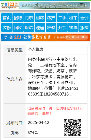 因身体原因营业中冷饮厅出兑,一二楼有地下室,店内有炸鸡。汉堡。奶茶,披萨,冷饮等技术,客源稳定,设备齐全,接手即可盈利,地点好,位置佳电话15145163339王18204580718 【电话咨询时,请一定说明在伊春信息网看到的,谢谢!】 |