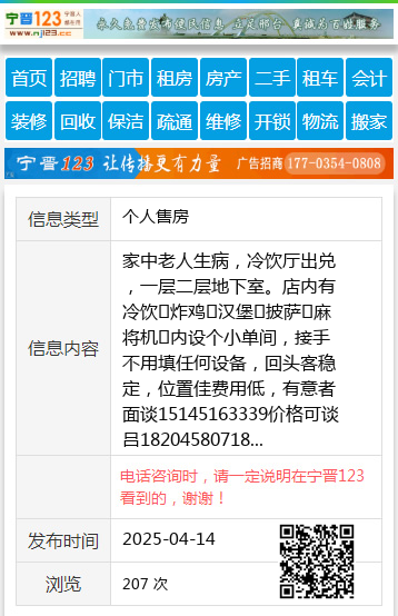 家中老人生病,冷饮厅出兑,一层二层地下室。店内有冷饮➕炸鸡➕汉堡➕披萨➕麻将机➕内设个小单间,接手不用填任何设备,回头客稳定,位置佳费用低,有意者面谈15145163339价格可谈吕18204580718 【电话咨询时,请一定说明在伊春信息网看到的,谢谢!】 |