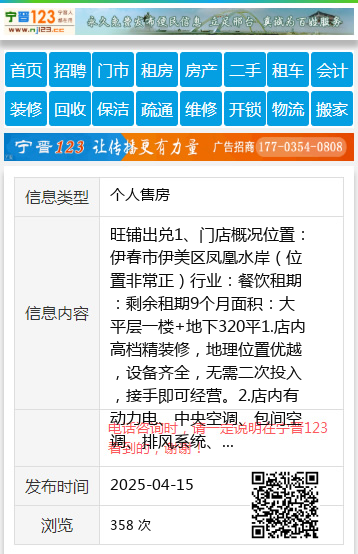 旺铺出兑1、门店概况位置:伊春市伊美区凤凰水岸(位置非常正)行业:餐饮租期:剩余租期9个月面积:大平层一楼+地下320平1.店内高档精装修,地理位置优越,设备齐全,无需二次投入,接手即可经营。2.店内有动力电、中央空调、包间空调、排风系统、监控、美团点菜系统(设备都非常新)厅室结构合理、宽敞明亮,厨房整洁。诚心出兑,非诚勿扰!闲打听的别给我打电话!(有时候接不起来电话,请语音留言,看到了会回电)18845849609女士18845849609 【电话咨询时,请一定说明在伊春信息网看到的,谢谢!】 |