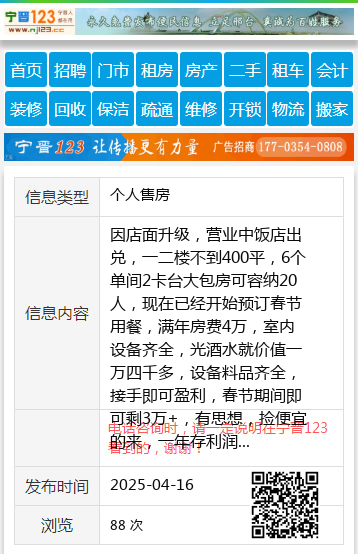 因店面升级,营业中饭店出兑,一二楼不到400平,6个单间2卡台大包房可容纳20人,现在已经开始预订春节用餐,满年房费4万,室内设备齐全,光酒水就价值一万四千多,设备料品齐全,接手即可盈利,春节期间即可剩3万+,有思想,捡便宜的来,一年存利润30+,电话13359669795.非诚勿扰于先生13359669795 【电话咨询时,请一定说明在伊春信息网看到的,谢谢!】 |