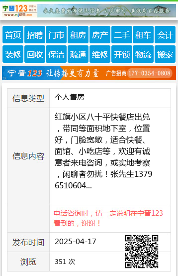 红旗小区八十平快餐店出兑,带同等面积地下室,位置好,门脸宽敞,适合快餐、面馆、小吃店等,欢迎有诚意者来电咨询,或实地考察,闲聊者勿扰!张先生13796510604 【电话咨询时,请一定说明在伊春信息网看到的,谢谢!】 |