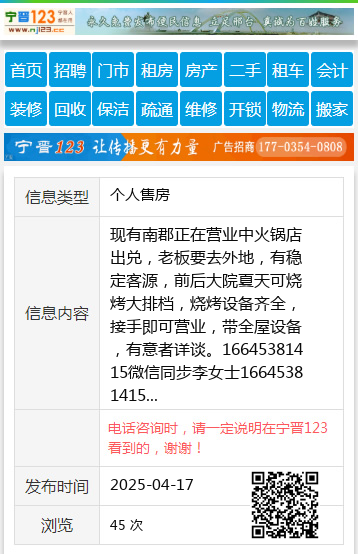 现有南郡正在营业中火锅店出兑,老板要去外地,有稳定客源,前后大院夏天可烧烤大排档,烧烤设备齐全,接手即可营业,带全屋设备,有意者详谈。16645381415微信同步李女士16645381415 【电话咨询时,请一定说明在伊春信息网看到的,谢谢!】 |