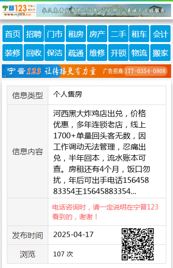 河西黑大炸鸡店出兑,价格优惠,多年连锁老店,线上1700+单量回头客无数,因工作调动无法管理,忍痛出兑,半年回本,流水账本可查。房租还有4个月,饭口勿扰,年后可出手电话15645883354王15645883354 【电话咨询时,请一定说明在伊春信息网看到的,谢谢!】 |