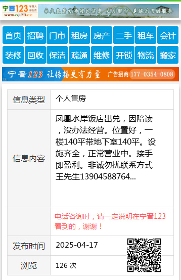 凤凰水岸饭店出兑,因陪读,没办法经营。位置好,一楼140平带地下室140平。设施齐全,正常营业中。接手即盈利。非诚勿扰联系方式王先生13904588764 【电话咨询时,请一定说明在伊春信息网看到的,谢谢!】 |