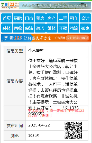 位于友好二道街嘉航三号楼土窑碳烤大公鸡店,转让出兑。接手便可盈利,口碑好,客户群体稳定,操作简单教技术,一人可干,活简单轻松,去饭店经历也轻松拿捏!有意者联系,非诚勿扰!主要提示:土窑碳烤大公鸡(友好店)!!!刘13359660652 【电话咨询时,请一定说明在伊春信息网看到的,谢谢!】 |