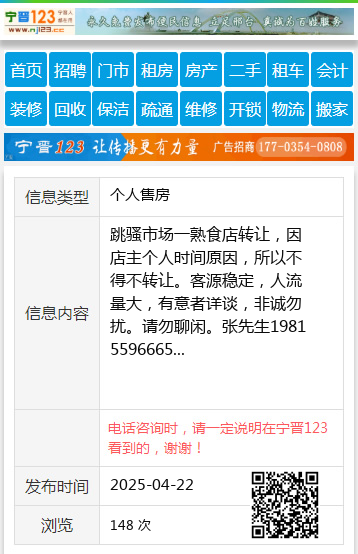 跳骚市场一熟食店转让,因店主个人时间原因,所以不得不转让。客源稳定,人流量大,有意者详谈,非诚勿扰。请勿聊闲。张先生19815596665 【电话咨询时,请一定说明在伊春信息网看到的,谢谢!】 |