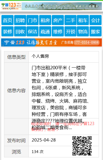 门市出租200平米(一楼带地下室)精装修,接手即可营业,室内宽敞明亮,独立包间,6张桌,新风系统,排烟系统,设施齐全,适合中餐、烧烤、火锅、麻将馆、理发店,美容院,商铺可多种经营,门前有停车场,客源稳定????地理位置优越。松韵城二期美食街☎️180−0458−5688蒙古宴正常营业中……李女士18004585688 【电话咨询时,请一定说明在伊春信息网看到的,谢谢!】 |