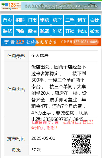 饭店出兑,因两个店经营不过来客源稳定,一二楼不到300平,一楼三个单间两个卡台,二楼三个单间,大桌能坐20人,厨房在一楼,设备齐全,接手即可营业,年租金4万,还有7个月房费,4.5万出手,非诚勿扰,联系电话13359669795/13845865848于先生13845865848 【电话咨询时,请一定说明在伊春信息网看到的,谢谢!】 |