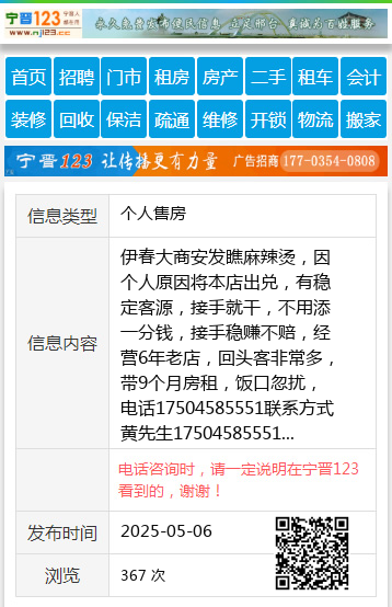 伊春大商安发瞧麻辣烫,因个人原因将本店出兑,有稳定客源,接手就干,不用添一分钱,接手稳赚不赔,经营6年老店,回头客非常多,带9个月房租,饭口忽扰,电话17504585551联系方式黄先生17504585551 【电话咨询时,请一定说明在伊春信息网看到的,谢谢!】 |