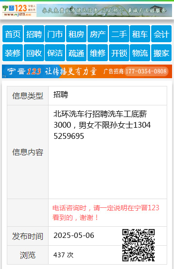 北环洗车行招聘洗车工底薪3000,男女不限孙女士13045259695