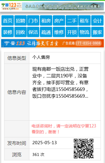 现有南郡一饭店出兑,正营业中,二层共190平,没备齐全,接手即可营业,有意者拔打电话15504585669,饭口勿扰李15504585669 【电话咨询时,请一定说明在伊春信息网看到的,谢谢!】 |