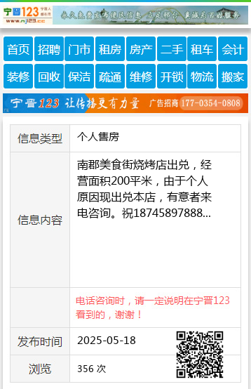 南郡烧烤店因个人身体原因出兑,现正常营业,经营状况良好,有意者来电咨询。先生18745897888