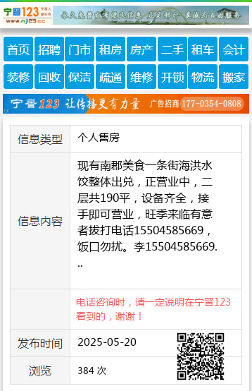 现有南郡美食一条街海洪水饺整体出兑,正营业中,二层共190平,设备齐全,接手即可营业,旺季来临有意者拔打电话15504585669,饭口勿扰。李15504585669 【电话咨询时,请一定说明在伊春信息网看到的,谢谢!】 |