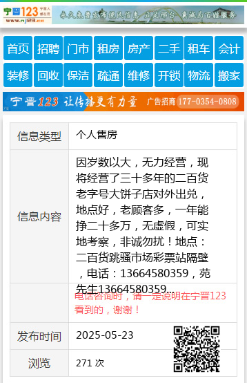 因岁数以大,无力经营,现将经营了三十多年的二百货老字号大饼子店对外出兑,地点好,老顾客多,一年能挣二十多万,无虚假,可实地考察,非诚勿扰!地点:二百货跳骚市场彩票站隔壁,电话:13664580359,苑先生13664580359 【电话咨询时,请一定说明在伊春信息网看到的,谢谢!】 |