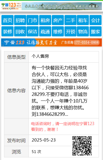 有一个快餐因无力经验寻找合伙人,可以大包,必须是沟通能力强的,年龄是40岁以下,只接受微信聊13846628299.不要打电话,非诚勿扰。一个人一年赚个10几万的联系,想赚大钱的勿扰。刘13846628299 【电话咨询时,请一定说明在伊春信息网看到的,谢谢!】 |