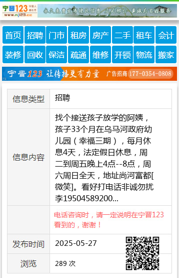找个接送孩子放学的阿姨,孩子33个月在乌马河政府幼儿园(幸福三期),每月休息4天,法定假日休息,周二到周五晚上4点--8点,周六周日全天,地址尚河富都[微笑]。看好打电话非诚勿扰李19504589200 【电话咨询时,请一定说明在伊春信息网看到的,谢谢!】 |