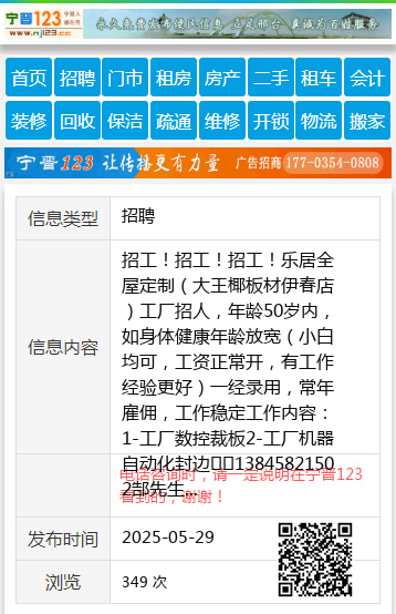 招工!招工!招工!乐居全屋定制(大王椰板材伊春店)工厂招人,年龄50岁内,如身体健康年龄放宽(小白均可,工资正常开,有工作经验更好)一经录用,常年雇佣,工作稳定工作内容:1-工厂数控裁板2-工厂机器自动化封边☎️13845821502郜先生13045251988