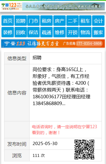 岗位要求:身高165以上,形象好,气质佳,有工作经验者优先薪资待遇:4200(带薪休假两天)联系电话:18610036177田经理田经理13845868809 【电话咨询时,请一定说明在伊春信息网看到的,谢谢!】 |