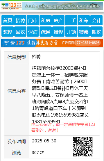 招聘前台接待3200➕餐补➕绩效上一休一,招聘客房服务员(肯吃苦耐劳)2600➕满勤➕提成➕餐补➕月休三天早八晚五,安保师傅一名上班时间晚5点早8点公交2路11路青峰道口下车十米即到!联系电话19815599981店长19815599981 【电话咨询时,请一定说明在伊春信息网看到的,谢谢!】 |