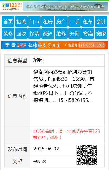 电话咨询时,请一定说明在伊春信息网看到的,谢谢!