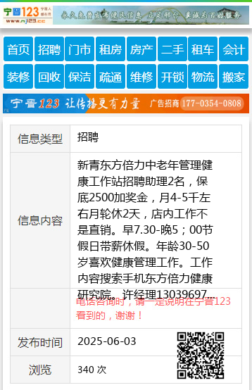 新青东方倍力中老年管理健康工作站招聘助理2名,保底2500加奖金,月4-5千左右月轮休2天,店内工作不是直销。早7.30-晚5;00节假日带薪休假。年龄30-50岁喜欢健康管理工作。工作内容搜索手机东方倍力健康研究院。许经理13039697188 【电话咨询时,请一定说明在伊春信息网看到的,谢谢!】 |