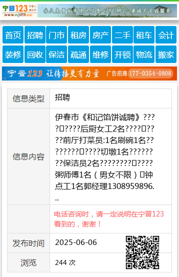 电话咨询时,请一定说明在伊春信息网看到的,谢谢!