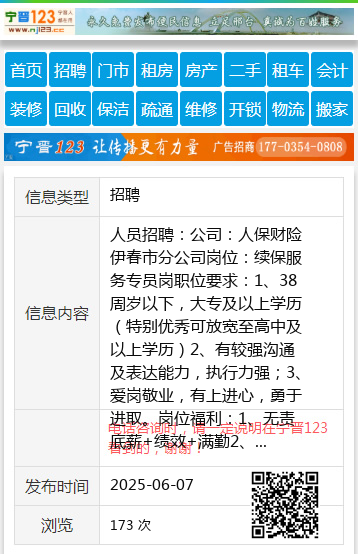 人员招聘:公司:人保财险伊春市分公司岗位:续保服务专员岗职位要求:1、38周岁以下,大专及以上学历(特别优秀可放宽至高中及以上学历)2、有较强沟通及表达能力,执行力强;3、爱岗敬业,有上进心,勇于进取。岗位福利:1、无责底薪+绩效+满勤2、签定劳务外包合同,缴纳五险;3、周末双休,无需外出展业;4、免费提供培训,上岗快5、免费营养早、午餐联系电话:15094560289董女士15094560289 【电话咨询时,请一定说明在伊春信息网看到的,谢谢!】 |