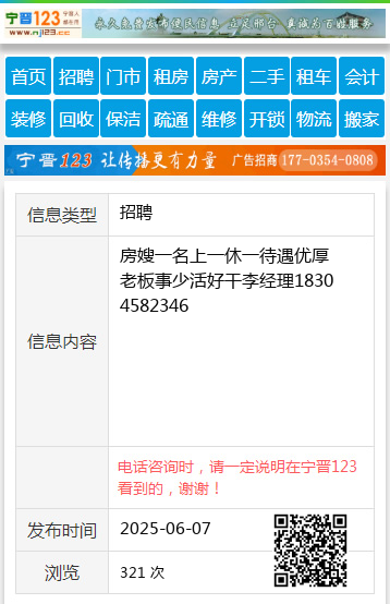 房嫂一名上一休一待遇优厚老板事少活好干李经理18304582346