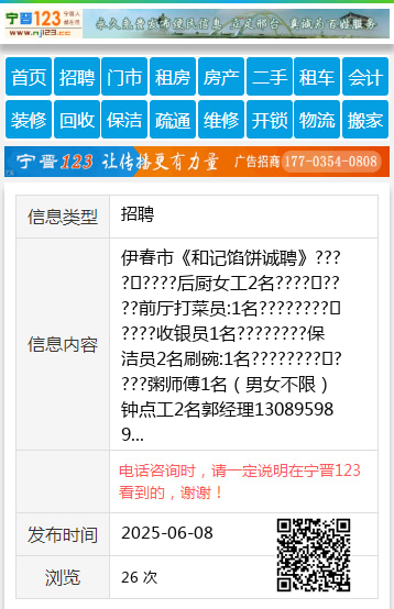 伊春市《和记馅饼诚聘》????????后厨女工2名????????前厅打菜员:1名????????????收银员1名????????保洁员2名刷碗:1名????????????粥师傅1名(男女不限)钟点工2名郭经理13089598966(微信同步)王经理13039661889(微信同步)郭经理13089598966 【电话咨询时,请一定说明在伊春信息网看到的,谢谢!】 |