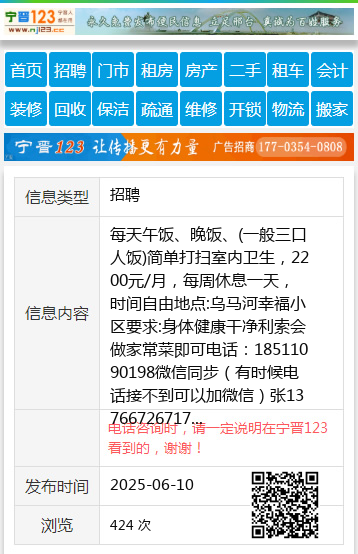 南环钢材市场招做饭阿姨一位中午做一顿饭有意者联系13766739360刘13766739360