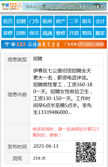 伊春区七公里旧货招聘全天更夫一名,薪资电话详谈。招聘男性零工,工资160-180一天。招聘女性收拾卫生,工资130-150一天。工作时间早6点半至晚5点半。李先生13339486000 【电话咨询时,请一定说明在伊春信息网看到的,谢谢!】 |