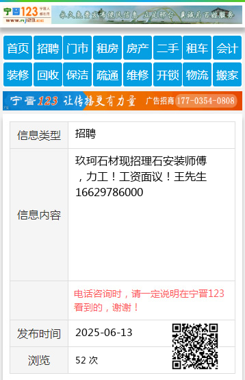 玖珂石材现招理石安装师傅,力工!工资面议!王先生16629786000