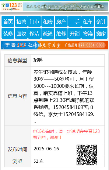 养生馆招聘成女技师,年龄30岁——50岁均可,月工资5000---10000要求长期,认真,踏实靠谱上班,下午13点到晚上21.30有想挣钱的联系我吧。15204584169可加微信。李女士15204584169 【电话咨询时,请一定说明在伊春信息网看到的,谢谢!】 |