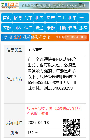 有一个连锁快餐因无力经营出兑,也可以大包,必须是沟通能力强的,年龄是45岁以下,只接受微信聊微信13654685533.不要打电话,非诚勿扰。刘13846628299 【电话咨询时,请一定说明在伊春信息网看到的,谢谢!】 |