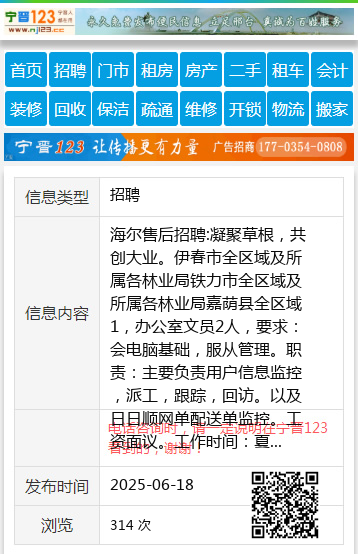 海尔售后招聘:凝聚草根,共创大业。伊春市全区域及所属各林业局铁力市全区域及所属各林业局嘉荫县全区域1,办公室文员2人,要求:会电脑基础,服从管理。职责:主要负责用户信息监控,派工,跟踪,回访。以及日日顺网单配送单监控。工资面议。工作时间:夏天8:00-18:002,招聘送货司机若干人,要求:有多年驾驶货车经验,独立基础维护车辆。服从管理,按要求完成每日任务。职责:负责家电配送,带货安装。工作时间无限制,以时效完成率为准。工资:月入5000-8000元3,家电安装维修服务兵若干人。有经验者直接考证入岗。无经验,可免费培训后考证入岗。工作时间:无限制以服务用户为主。工资:月入5000-8000元(不算空调旺季,具体面谈)公司:伊春市沐宸商贸有限公司(铁力海尔)地址:铁力市愿景家园E1栋商服公司:黑龙江德允商贸有限公司(伊春海尔)地址:伊春市七公里海尔智家热线:16536402222热线:18645871444热线:0458-2297666热线:0458-3909999联系方式区域:伊美称呼:周经理电话:18645871444微信:18645871444周经理18645871444 【电话咨询时,请一定说明在伊春信息网看到的,谢谢!】 |