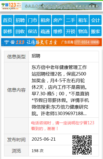 东方倍中老年健康管理工作站招聘经理2名,保底2500加奖金,月4-5千左右月轮休2天,店内工作不是直销。早7.30-晚5;00,*不是直销*节假日带薪休假。详情手机微信搜索:东方倍力健康研究院。许老师13039697188 【电话咨询时,请一定说明在伊春信息网看到的,谢谢!】 |
