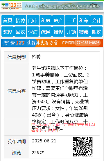 养生馆招聘以下工作岗位:1.成手美容师,工资面议。2学员助理,工作重复简单但忙碌,需要责任心眼里有活有一定的沟通学习能力,工资3500。没有销售,无业绩压力要求:女性,年龄28到40岁(已育),身心健康情绪稳定,工作时间八点二十到五点半。联系电话:13846655582王13846655582 【电话咨询时,请一定说明在伊春信息网看到的,谢谢!】 |
