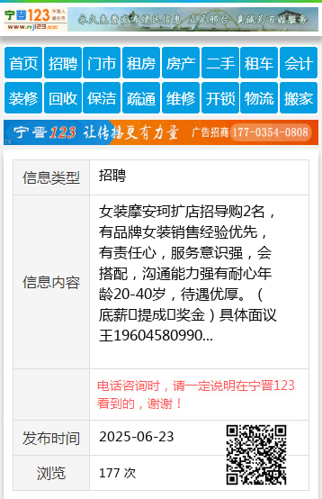 女装摩安珂扩店招导购2名,有品牌女装销售经验优先,有责任心,服务意识强,会搭配,沟通能力强有耐心年龄20-40岁,待遇优厚。(底薪➕提成➕奖金)具体面议王19604580990 【电话咨询时,请一定说明在伊春信息网看到的,谢谢!】 |