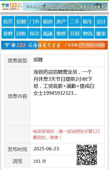 连锁药店招聘营业员,一个月休息3天节日提前2小时下班,工资底薪+满勤+提成白女士19945932323