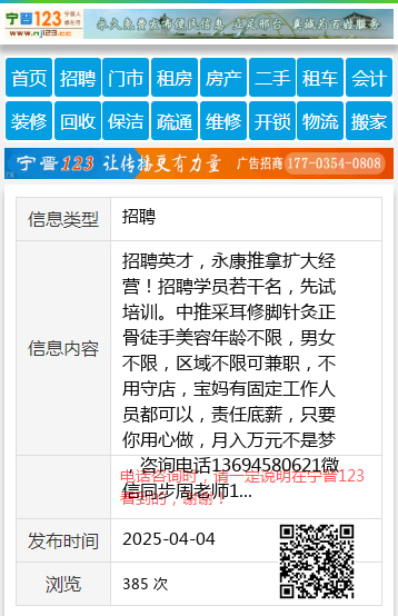 招聘英才,永康推拿扩大经营!招聘学员若干名,先试培训。中推采耳修脚针灸正骨徒手美容年龄不限,男女不限,区域不限可兼职,不用守店,宝妈有固定工作人员都可以,责任底薪,只要你用心做,月入万元不是梦,咨询电话13694580621微信同步周老师13694580621 【电话咨询时,请一定说明在伊春信息网看到的,谢谢!】 |