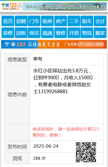 永红小区驿站出兑3.8万元,日到件900➕,月收入1500➕,有意者电联或者微信赵女士13199268881