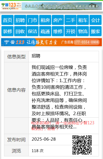 我们现诚招一位房嫂,负责酒店客房相关工作,具体岗位详情如下:1.工作内容:负责10间客房的清洁工作,包括更换床品、打扫卫生、补充洗漱用品等,确保房间整洁舒适,检查房间设施,及时上报损坏情况。2.任职要求:人品好,有责任心,具备客房服务相关经验,能吃苦耐劳,工作细致认真。3.工作时间:早上8点至下午4点,月休4个半天。4.薪资待遇:底薪2800+满勤奖金200+饭补加交通补贴+节假日奖金。工作环境好。老板人品好。我们期待您的加入,有意者请联系[联系电话]王先生19945939800 【电话咨询时,请一定说明在伊春信息网看到的,谢谢!】 |