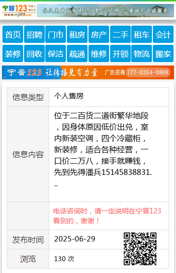 位于二百货二道街繁华地段,因身体原因低价出兑,室内新装空调,四个冷藏柜,新装修,适合各种经营,一口价二万八,接手就赚钱,先到先得潘兵15145838831 【电话咨询时,请一定说明在伊春信息网看到的,谢谢!】 |
