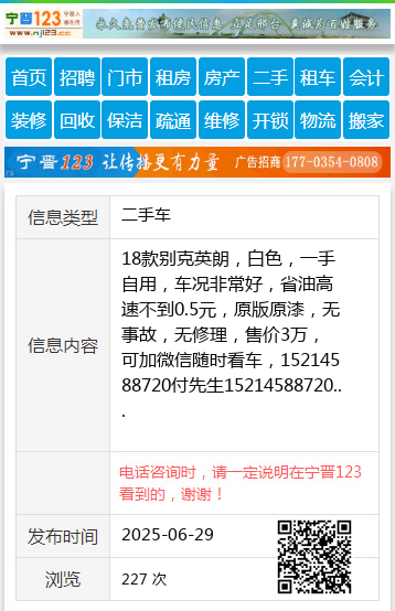 18款别克英朗,白色,一手自用,车况非常好,省油高速不到0.5元,原版原漆,无事故,无修理,售价3万,可加微信随时看车,15214588720付先生15214588720 【电话咨询时,请一定说明在伊春信息网看到的,谢谢!】 |