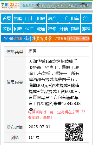 天润华城168烧烤招聘成手服务员,钟点工,暑假工.刷碗工.有菜梯,活好干,所有啤酒都有提成底薪四千五,满勤300元+酒水提成+储值提成+菜品提成工资6000+,有寝室乌马河方向有通勤车有工作经验的来曹13845838882 【电话咨询时,请一定说明在伊春信息网看到的,谢谢!】 |