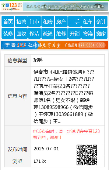 伊春市《和记馅饼诚聘》????????后厨女工2名????????前厅打菜员1名????????保洁员2名????????????粥师傅1名(男女不限)郭经理13089598966(微信同步)王经理13039661889(微信同步)王13039661889 【电话咨询时,请一定说明在伊春信息网看到的,谢谢!】 |