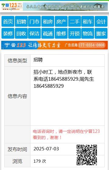 招小时工,地点新夜市,联系电话18645885929.周先生18645885929
