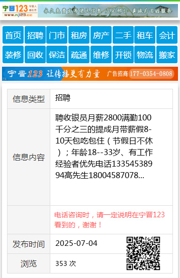 | 防骗提醒: | 伊春信息网(www.yichunba.cn)提醒您:手工活、网络兼职、刷单,都是骗子!凡以各种名义收取费用的都是骗子!找工作是往兜里挣钱,让你往外掏钱的都是骗子!异地招聘请提高警惕,谨防诈骗! |
