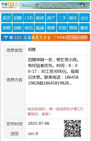 招聘保姆一名,帮忙带小孩。有经验者优先。时间:8:00-17:30工资3000元。每周日休息。联系电话:18645819828赵18645819828 【电话咨询时,请一定说明在伊春信息网看到的,谢谢!】 |